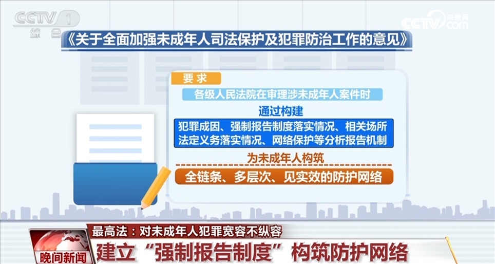 此外,《意見》還要求各級人民法院在審理涉未成年人案件時通過構(gòu)建犯罪成因、強制報告制度落實情況、相關(guān)場所法定義務(wù)落實情況、網(wǎng)絡(luò)保護等分析報告機制,為未成年人構(gòu)筑全鏈條、多層次、見實效的防護網(wǎng)絡(luò)。