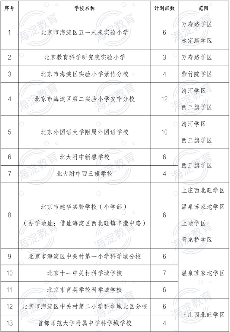 持有海淀區(qū)《學(xué)齡人口信息采集表》的適齡兒童且戶(hù)口所在地或者實(shí)際居住地屬于萬(wàn)壽路學(xué)區(qū)、永定路學(xué)區(qū)、羊坊店學(xué)區(qū)、八里莊學(xué)區(qū)、紫竹院學(xué)區(qū)、海淀學(xué)區(qū)、中關(guān)村學(xué)區(qū)、北太平莊學(xué)區(qū)、上地學(xué)區(qū)、青龍橋?qū)W區(qū)、清河學(xué)區(qū)、西三旗學(xué)區(qū)、上莊西北旺學(xué)區(qū)、溫泉蘇家坨學(xué)區(qū)之一,對(duì)應(yīng)范圍內(nèi)的兒童僅可填報(bào)一所公辦中學(xué)舉辦小學(xué)部及新建小學(xué)。