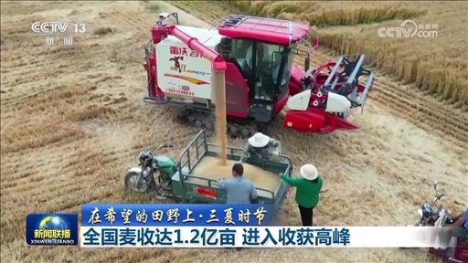 央視網(wǎng)消息(新聞聯(lián)播):農(nóng)業(yè)農(nóng)村部最新數(shù)據(jù)顯示,當(dāng)前全國(guó)麥?zhǔn)者_(dá)1.2億畝,進(jìn)度過三成半,已進(jìn)入收獲高峰。