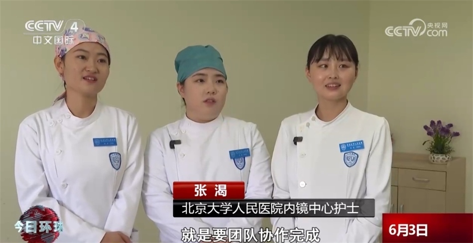 北京大學人民醫(yī)院內(nèi)鏡中心護士張渴稱:“因為老干這個,知道下一步怎么做,就是要團隊協(xié)作完成。”