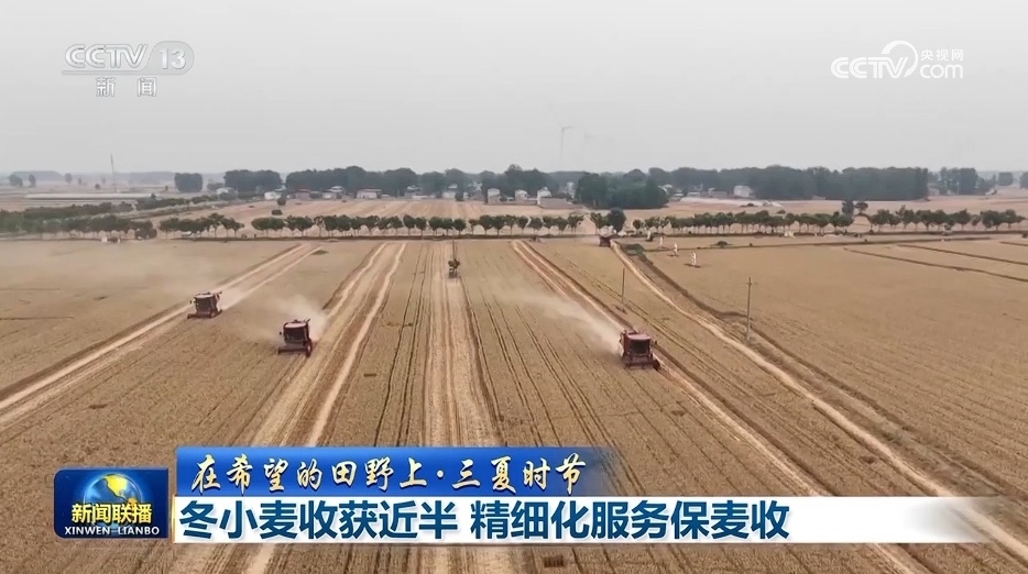 央視網(wǎng)消息(新聞聯(lián)播):農(nóng)業(yè)農(nóng)村部最新數(shù)據(jù)顯示,當(dāng)前全國(guó)已收獲冬小麥面積1.57億畝,收獲進(jìn)度近半。各地因地制宜推出了各類服務(wù)舉措,保障小麥顆粒歸倉。