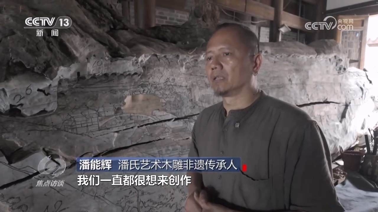 潘氏藝術(shù)木雕非遺傳承人潘能輝:“我們一直都很想創(chuàng)作完全屬于本土地域特色的作品,如何把常德文化傳承下去,正好河街也是根基所在?!?/p>