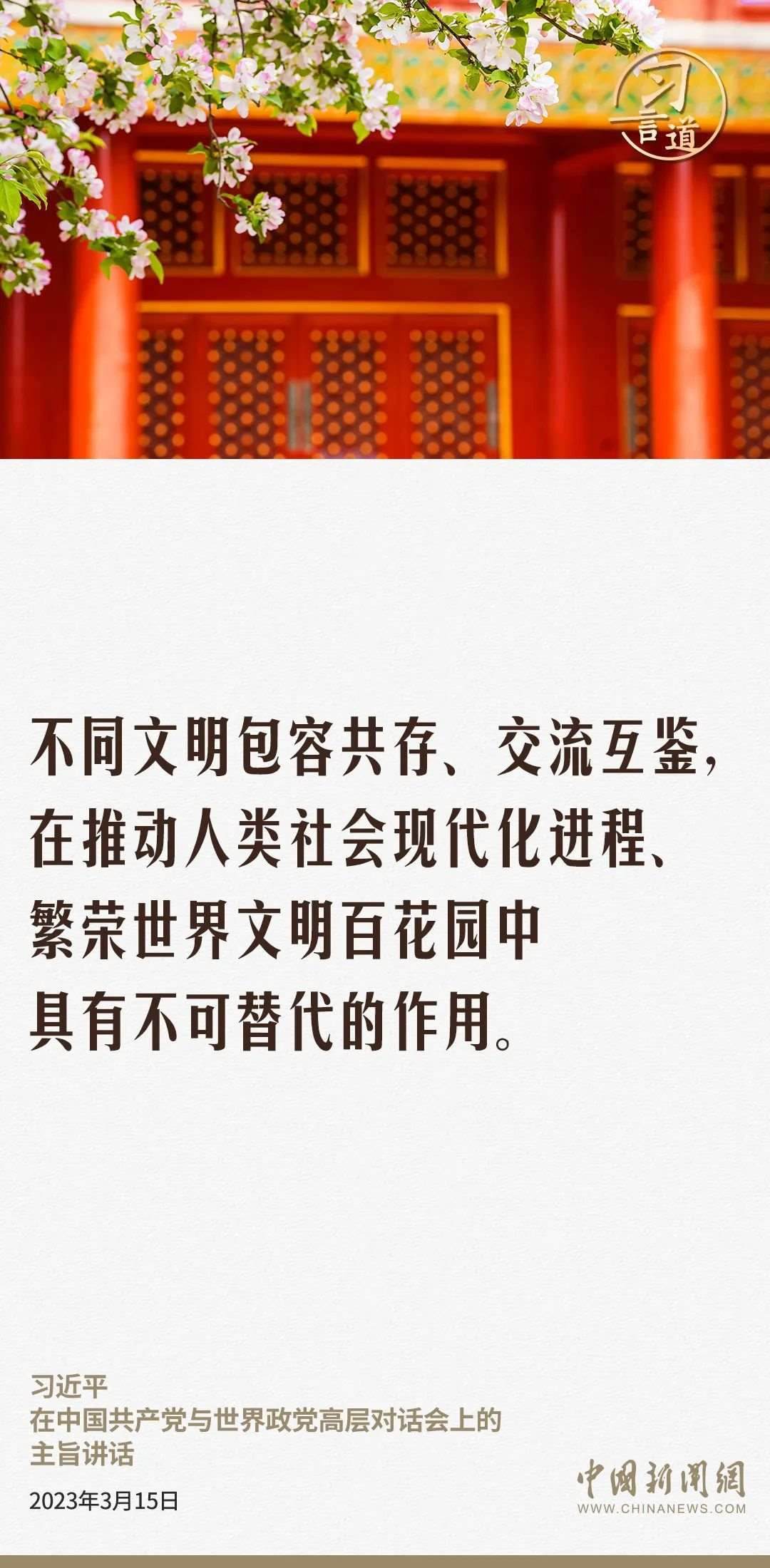 “一花獨放不是春,百花齊放春滿園?!绷暯娇倳浉叨戎匾暡煌拿髦g的交流互鑒,多次作出重要論述。