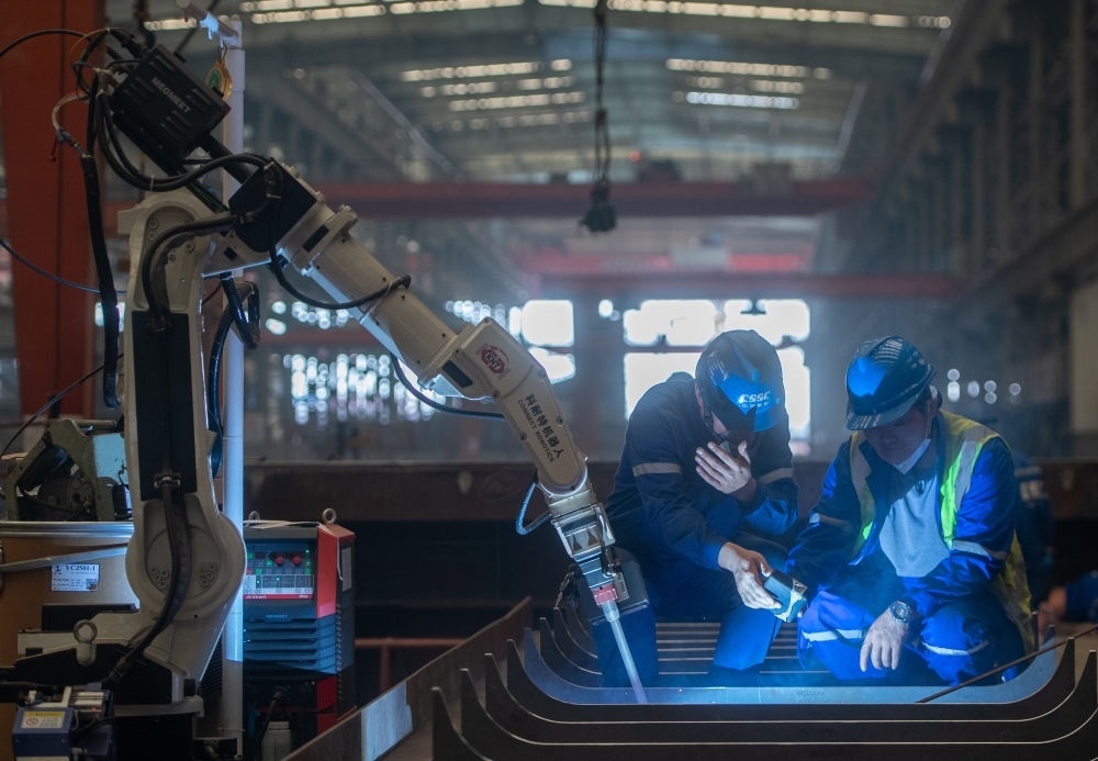2024年5月16日,工作人員在湖北省武漢市新洲區(qū)武昌船舶重工集團(tuán)有限公司查看焊接機(jī)器人焊接的焊縫。近年來(lái),該公司圍繞新型公務(wù)船、高端海工船、中小型綠色智能油化船和支線(xiàn)集裝箱船等主建船型,積極推進(jìn)數(shù)字化轉(zhuǎn)型與智能制造,助力航運(yùn)高質(zhì)量發(fā)展。
