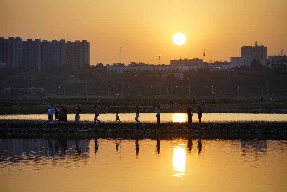 如今,漫步在鹽湖的環(huán)湖步道上,碧波蕩漾,風景秀美,鹽湖逐漸成為人們親山親水親自然的好去處和打卡地。