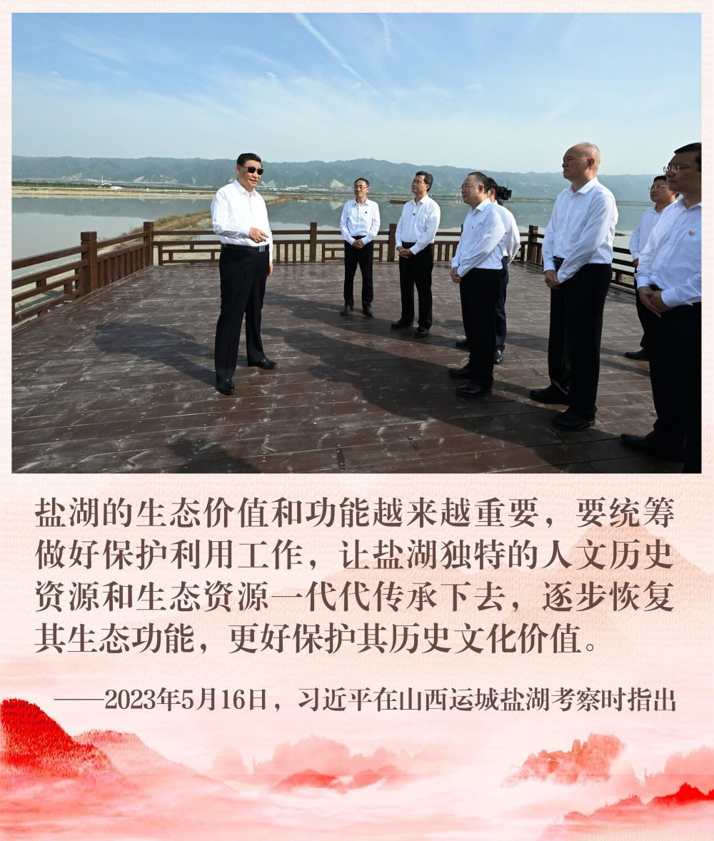 2023年5月16日,習近平總書記在山西運城鹽湖考察時,對鹽湖保護利用作出重要指示。