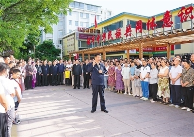 傍晚時(shí)分,社區(qū)廣場(chǎng)十分熱鬧,居民們看見總書記來了,紛紛圍攏過來,熱烈鼓掌歡迎。習(xí)近平親切地對(duì)大家說,時(shí)隔4年,我再次來寧夏看望各族干部群眾,見到大家非常高興!中華民族是一個(gè)大家庭,各族人民要像石榴籽一樣緊緊抱在一起。要不斷鑄牢中華民族共同體意識(shí),把各族人民的心緊緊連在一起,把各方面的力量廣泛凝聚到一起,共同推進(jìn)中國式現(xiàn)代化,共襄中華民族偉大復(fù)興的盛舉。