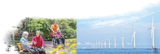 圖④:貴州省貴陽市白云區(qū)白沙關(guān)社區(qū)幸福苑養(yǎng)老中心,老年人在花園里休息。袁福洪攝(影像中國) 圖⑤:遼寧大連莊河海上風(fēng)電項目。新華社記者 楊 青攝