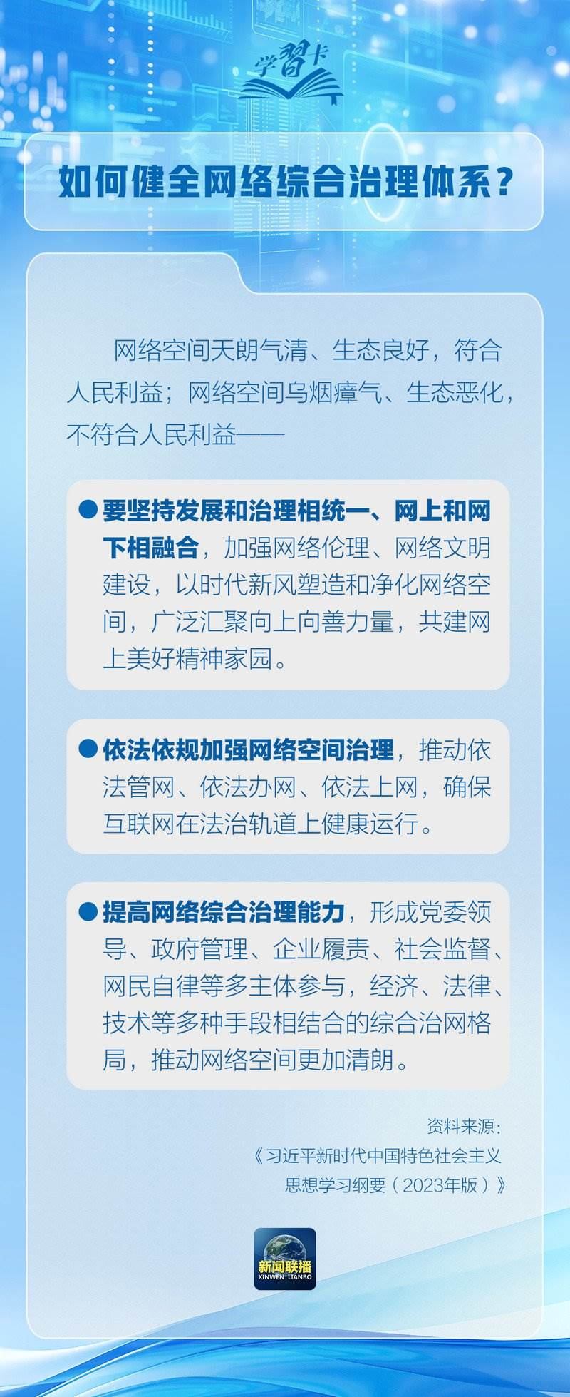 習(xí)近平總書記在《關(guān)于〈中共中央關(guān)于進(jìn)一步全面深化改革、推進(jìn)中國式現(xiàn)代化的決定〉的說明》中強(qiáng)調(diào)要健全網(wǎng)絡(luò)綜合治理體系。