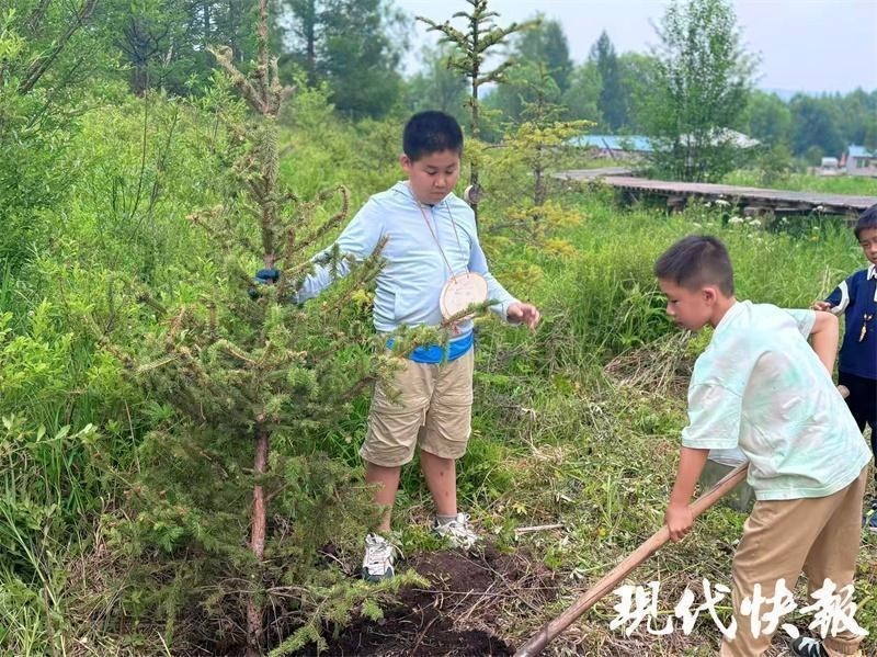 這樣的美麗風(fēng)景讓第一次來(lái)到大草原的周云昊很興奮。“我們從當(dāng)?shù)亓私獾?,這是一代又一代人努力的結(jié)果,讓我們也深切感受到生態(tài)保護(hù)的重要性?!毖袑W(xué)途中,周云昊和小伙伴們還專門(mén)在當(dāng)?shù)亓謭?chǎng)種下一棵樹(shù)?!跋M芙】甸L(zhǎng)大,成為守護(hù)綠色草原的小衛(wèi)士?!?/p>