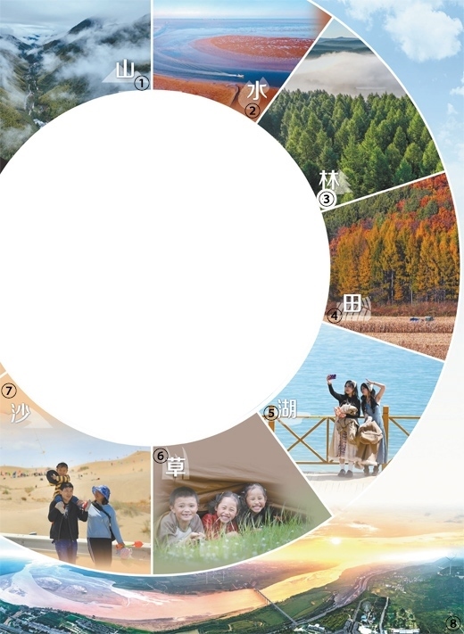 圖①:雨后的武夷山國家公園云霧繚繞。國家公園是我國自然生態(tài)系統(tǒng)中最重要、自然景觀最獨(dú)特、自然遺產(chǎn)最精華、生物多樣性最富集的部分,我國國家公園建設(shè)是生態(tài)文明建設(shè)中具有示范引領(lǐng)意義的工程。邱汝泉攝(新華社發(fā))圖②:山東東營市紅灘濕地旅游區(qū)生態(tài)濕地,生長在灘涂上的堿蓬等鹽生植物,如同一塊巨大的紅地毯。劉智峰攝(影像中國)圖③:河北承德市圍場滿族蒙古族自治縣塞罕壩國家森林公園。組建至今,塞罕壩機(jī)械林場營造人工林百萬畝,創(chuàng)造了荒原變林海的奇跡。劉滿倉攝(影像中國)圖④:黑龍江雞西密山市黑土地上種植的玉米。近年來,我國加強(qiáng)黑土地保護(hù),守護(hù)“耕地中的大熊貓”。孫樹寶攝(影像中國)圖⑤:游客在青海湖畔拍照。當(dāng)?shù)亓己玫纳鷳B(tài)環(huán)境和優(yōu)美的景色吸引了來自全國各地的大量游客。新華社記者 張 龍攝圖⑥:四川甘孜藏族自治州日通草原上,躲在帳篷里的小朋友享受假日生活。我國持續(xù)推進(jìn)草原生態(tài)保護(hù)修復(fù),穩(wěn)步提升草原生態(tài)功能。新華社記者 江宏景攝圖⑦:新疆博湖縣博斯騰湖畔的艾勒遜烏拉沙漠,游客正帶著孩子在游玩。近年來,我國推進(jìn)科學(xué)化、規(guī)模化治沙,重點治理區(qū)實現(xiàn)“沙進(jìn)人退”到“綠進(jìn)沙退”的歷史性轉(zhuǎn)變。年 磊攝(人民視覺)圖⑧:黃河陜西潼關(guān)段景觀。近年來,我國持續(xù)推動黃河流域生態(tài)保護(hù)和高質(zhì)量發(fā)展,流域生態(tài)環(huán)境持續(xù)明顯向好,讓黃河成為造福人民的幸福河。王生暉攝(人民視覺)