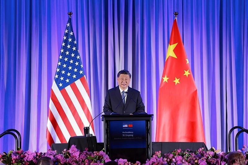 △當(dāng)?shù)貢r間2023年11月15日,習(xí)近平主席在美國舊金山出席美國友好團(tuán)體聯(lián)合舉行的歡迎宴會。