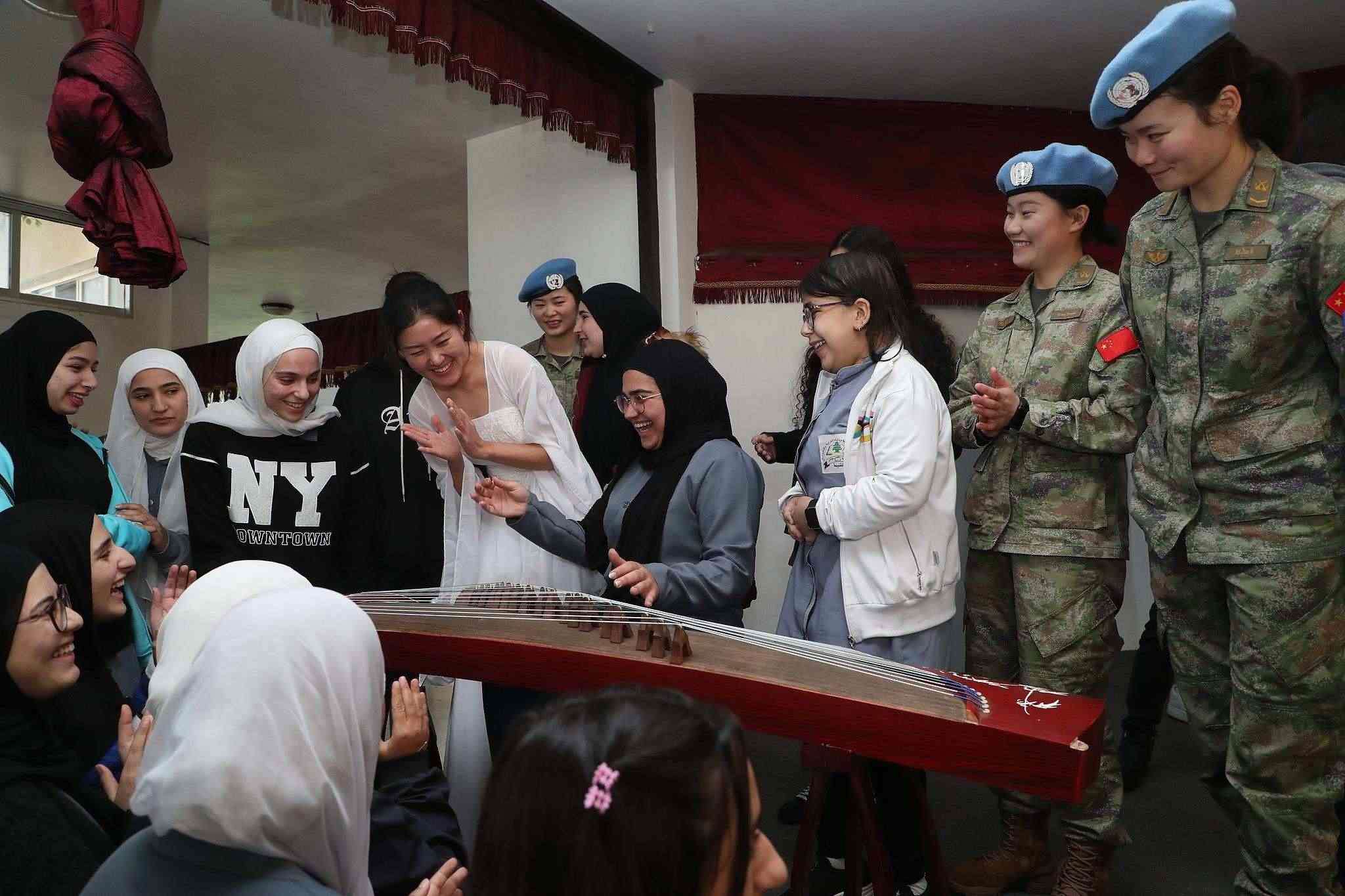△2024年3月12日,中國第22批赴黎維和部隊官兵與黎巴嫩庫雷拉中學(xué)開展文化交流活動。