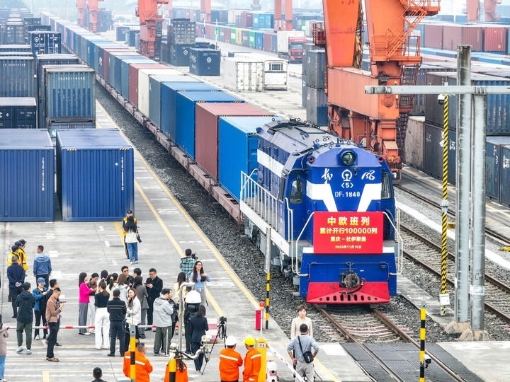 11月15日上午10時(shí)20分,重慶團(tuán)結(jié)村中心站。隨著X8083次中歐班列(重慶—杜伊斯堡)從站臺(tái)緩緩駛出,中歐班列累計(jì)開行突破10萬列。