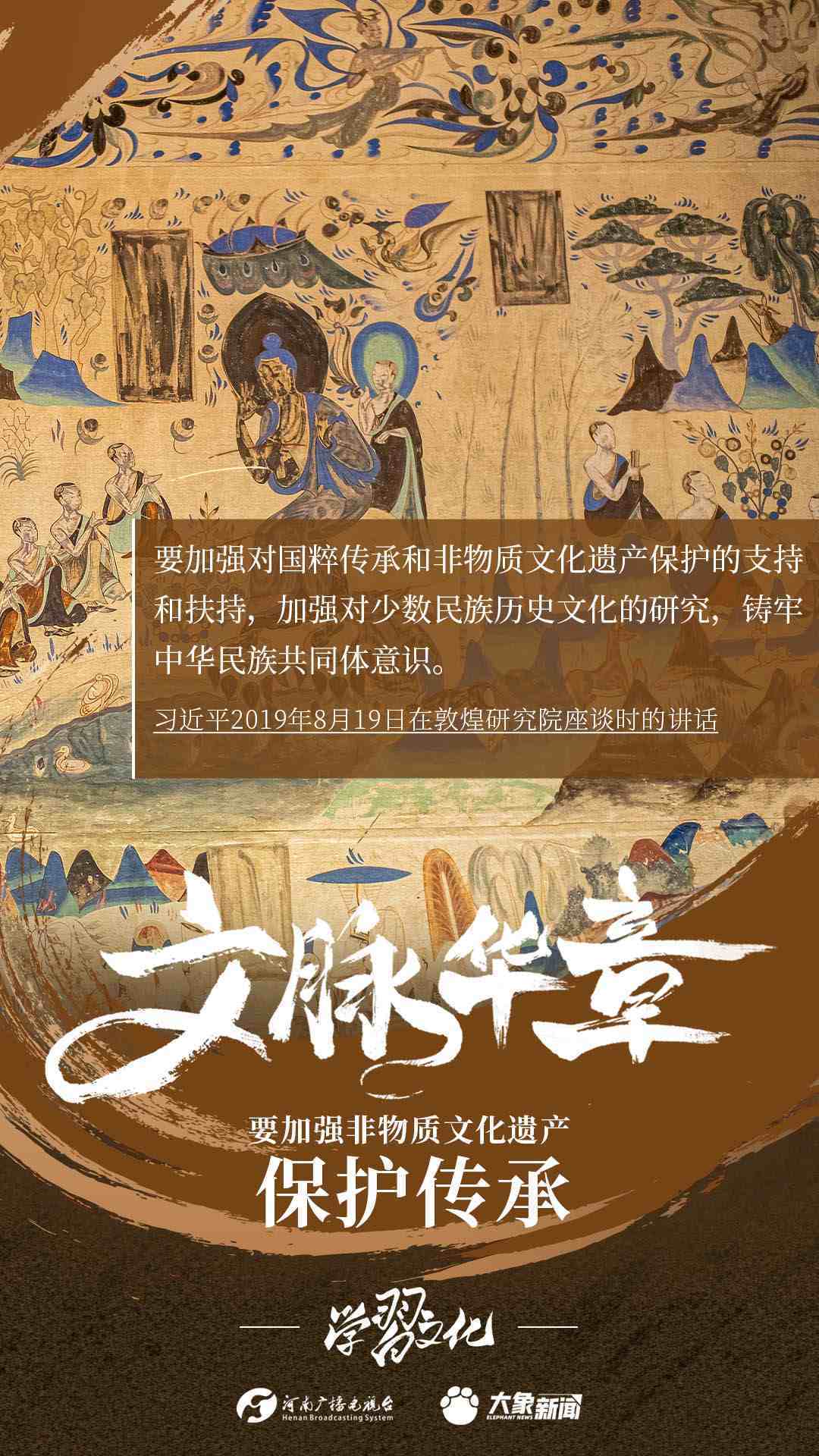 非物質(zhì)文化遺產(chǎn)是中華優(yōu)秀傳統(tǒng)文化的重要組成部分,是中華文明綿延傳承的生動見證,是我國各族人民寶貴的精神財富。習(xí)近平總書記十分關(guān)心非物質(zhì)文化遺產(chǎn)的保護傳承,多次強調(diào)“要扎實做好非物質(zhì)文化遺產(chǎn)的系統(tǒng)性保護”“培養(yǎng)好傳承人”等。大象新聞為您梳理,邀您一起學(xué)習(xí)、領(lǐng)悟、踐行。