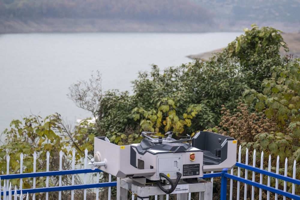 2024年12月8日,位于丹江口市庫區(qū)綜合執(zhí)法大隊(duì)六中隊(duì)的機(jī)巢式無人機(jī)準(zhǔn)備起飛。