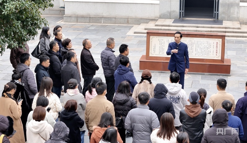 胡昇正在給游客講解青山生態(tài)蝶變的故事(央廣網(wǎng)見習記者鄧子依 攝)