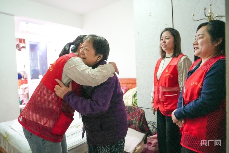 張麗娟熱情地擁抱社區(qū)工作人員(央廣網(wǎng)見習記者鄧子依 攝)
