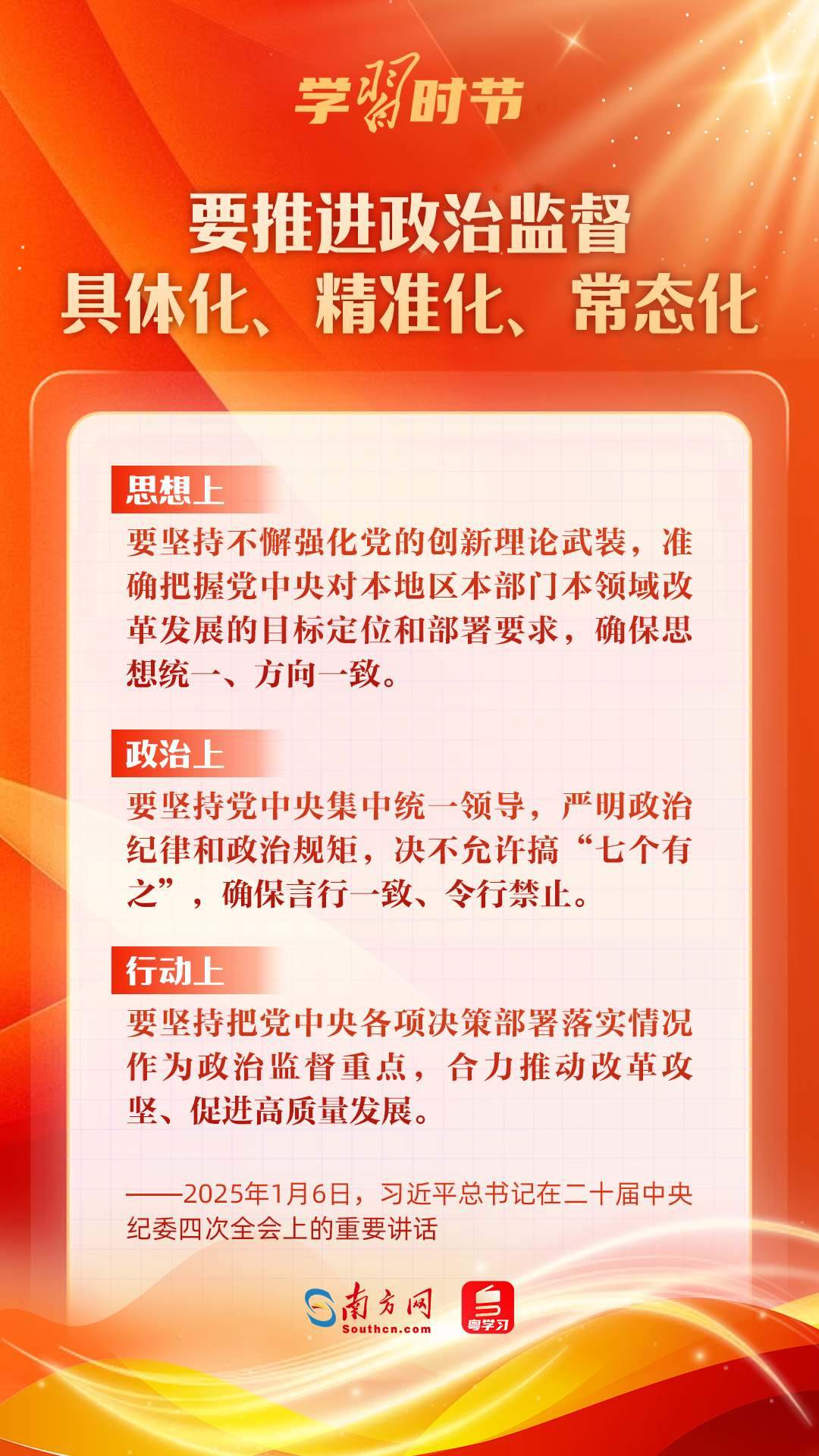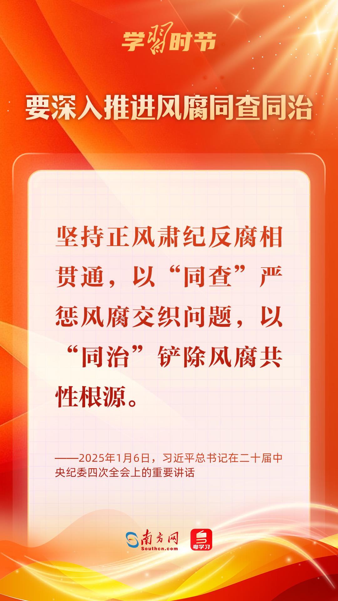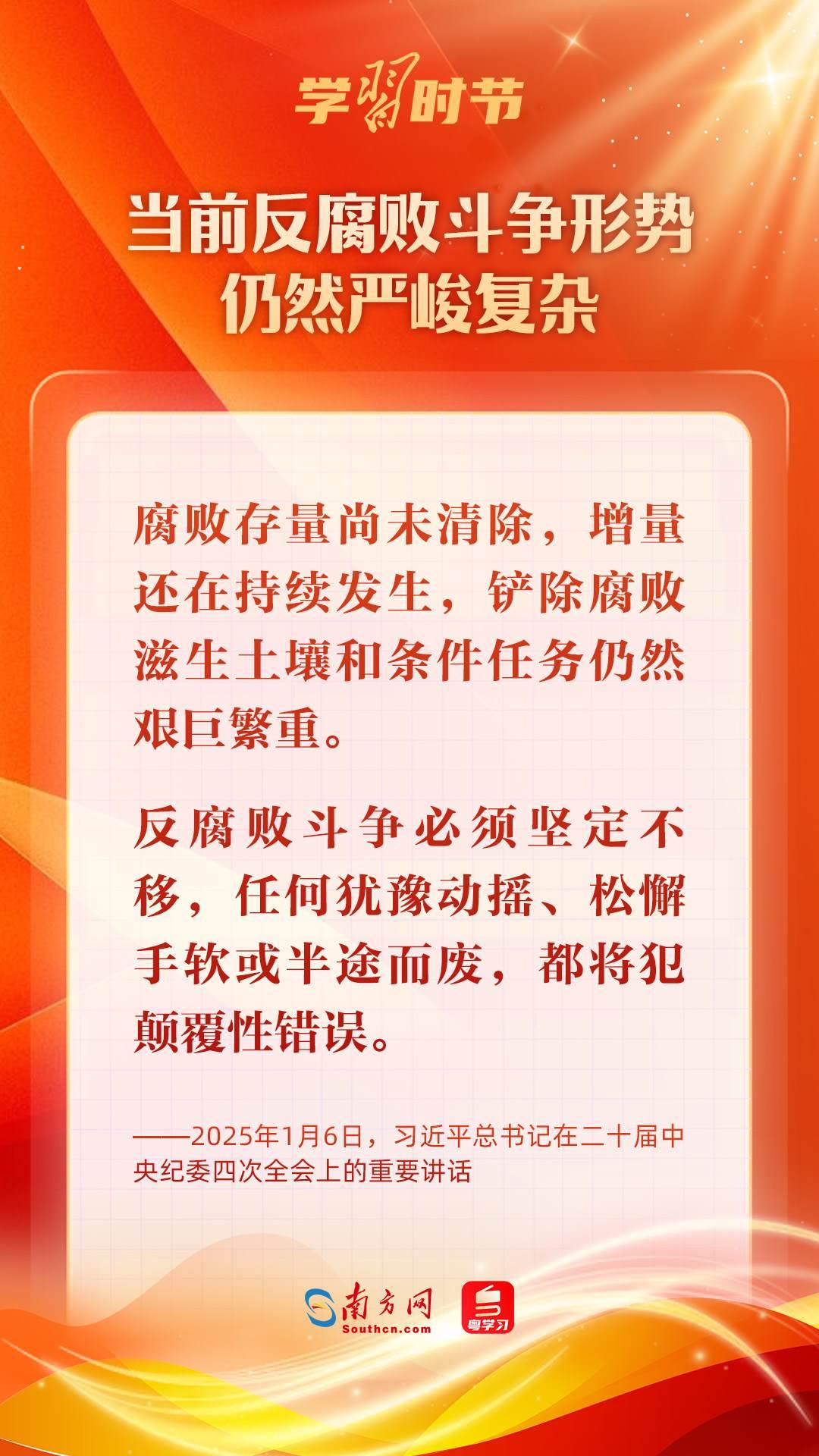 1月6日,中共中央總書記、國家主席、中央軍委主席習近平在中國共產(chǎn)黨第二十屆中央紀律檢查委員會第四次全體會議上發(fā)表重要講話,深刻把握反腐敗斗爭基本規(guī)律,深刻分析當前反腐敗斗爭形勢,對堅決打好反腐敗斗爭攻堅戰(zhàn)、持久戰(zhàn)、總體戰(zhàn)提出明確要求,對深入推進全面從嚴治黨作出戰(zhàn)略部署。