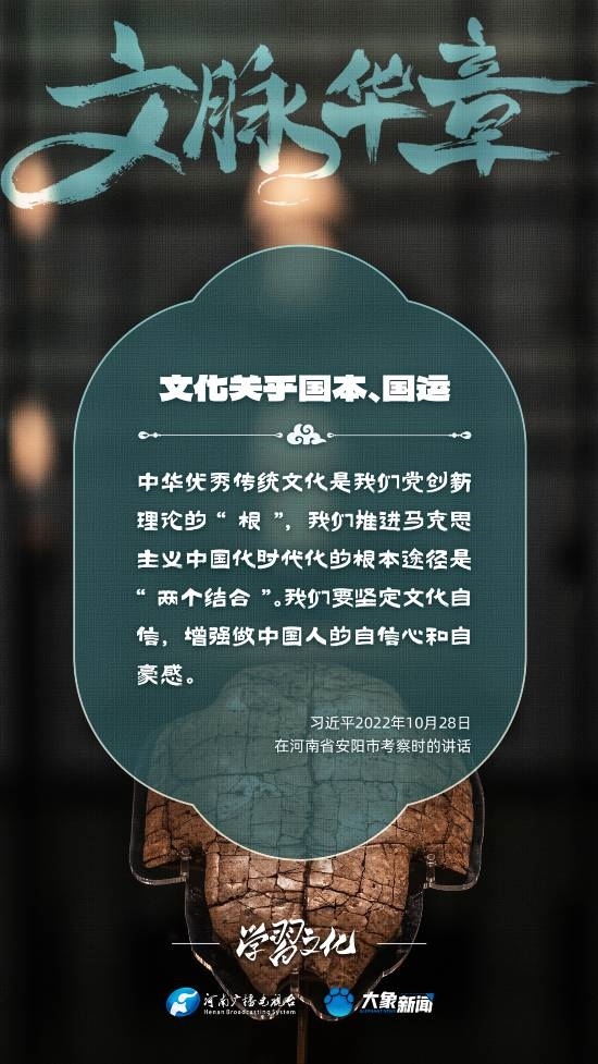 習(xí)近平總書記高度重視文化之于國(guó)家、之于民族的重大意義,強(qiáng)調(diào):文化是一個(gè)國(guó)家、一個(gè)民族的靈魂。文化興國(guó)運(yùn)興,文化強(qiáng)民族強(qiáng)。沒有高度的文化自信,沒有文化的繁榮興盛,就沒有中華民族偉大復(fù)興。大象新聞梳理了習(xí)近平總書記的系列重要論述,我們一起學(xué)習(xí)。