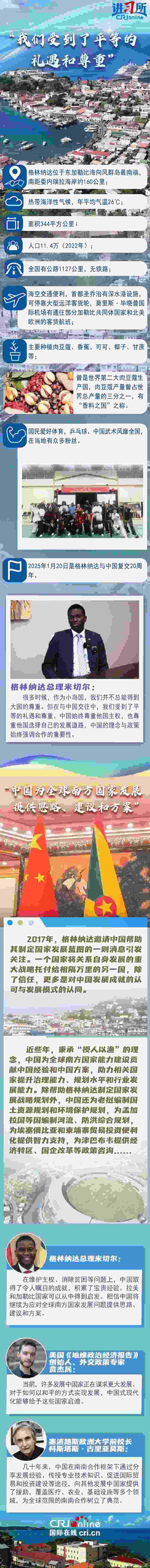 今年是格林納達(dá)與中國復(fù)交20周年。20年來,中格關(guān)系穩(wěn)定發(fā)展,雙方相互尊重、平等相待,政治互信不斷鞏固,各領(lǐng)域務(wù)實合作成果豐碩……樹立了大小國家平等相待、守望相助、互利共贏的典范。