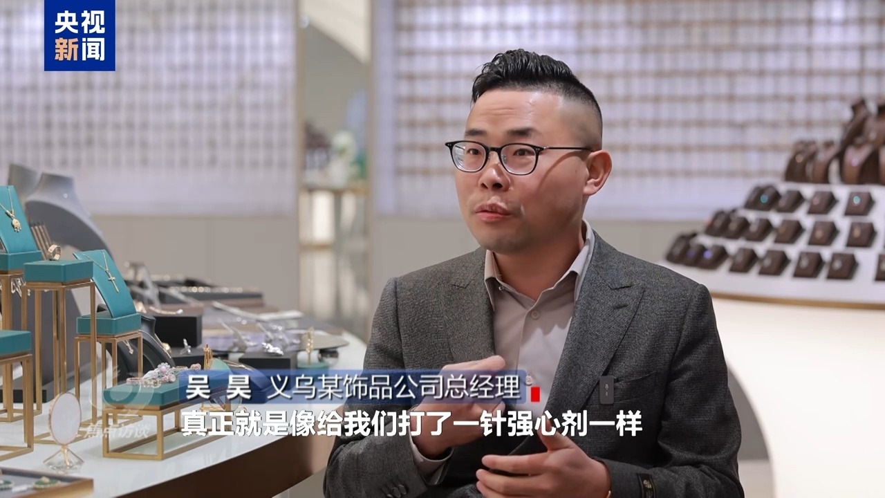 義烏某飾品公司總經(jīng)理 吳昊:總書記提出了國(guó)內(nèi)國(guó)際雙循環(huán)的事,對(duì)我們企業(yè)來(lái)說(shuō),真正就是像給我們打了一個(gè)強(qiáng)心劑一樣,就是堅(jiān)定了我們未來(lái)發(fā)展方向,企業(yè)就沒有那么迷茫了。