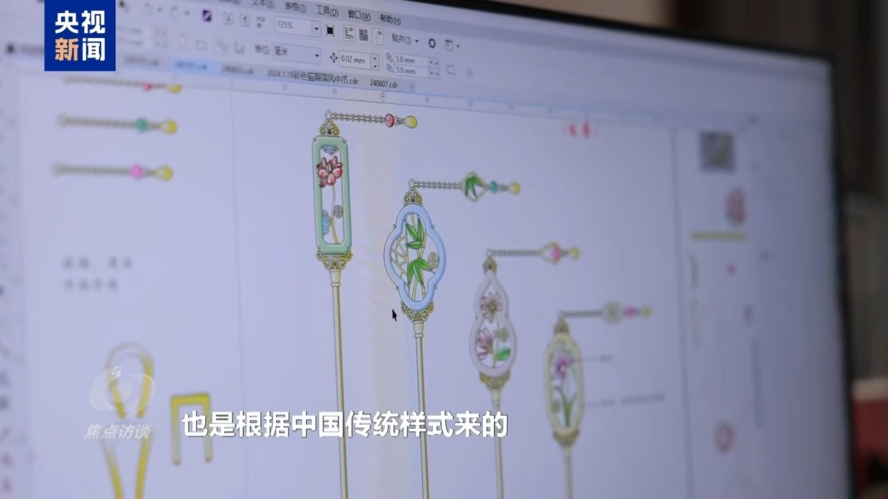 義烏某飾品公司產(chǎn)品設(shè)計(jì)師 周亮:梅蘭竹菊有傳統(tǒng)的一些寓意,然后這些圖案的外形,也是根據(jù)中國(guó)傳統(tǒng)樣式來(lái)的。材料方面,我主要是想體現(xiàn)中國(guó)的那種翡翠的感覺。