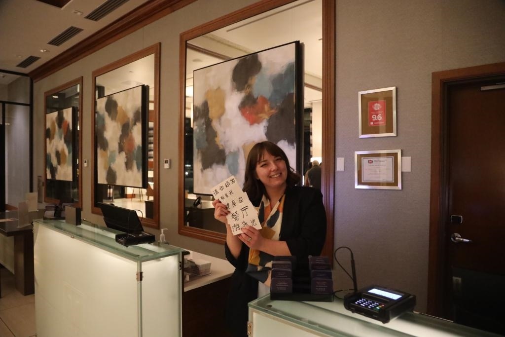 “請您稍等”“請聯(lián)系我”……在中國學(xué)生們?nèi)胱〉木频?,前臺工作人員謝伊·馬丁提前準(zhǔn)備了厚厚一疊中文指引卡片,讓很多第一次海外過年的中國小客人感到心里暖暖的。