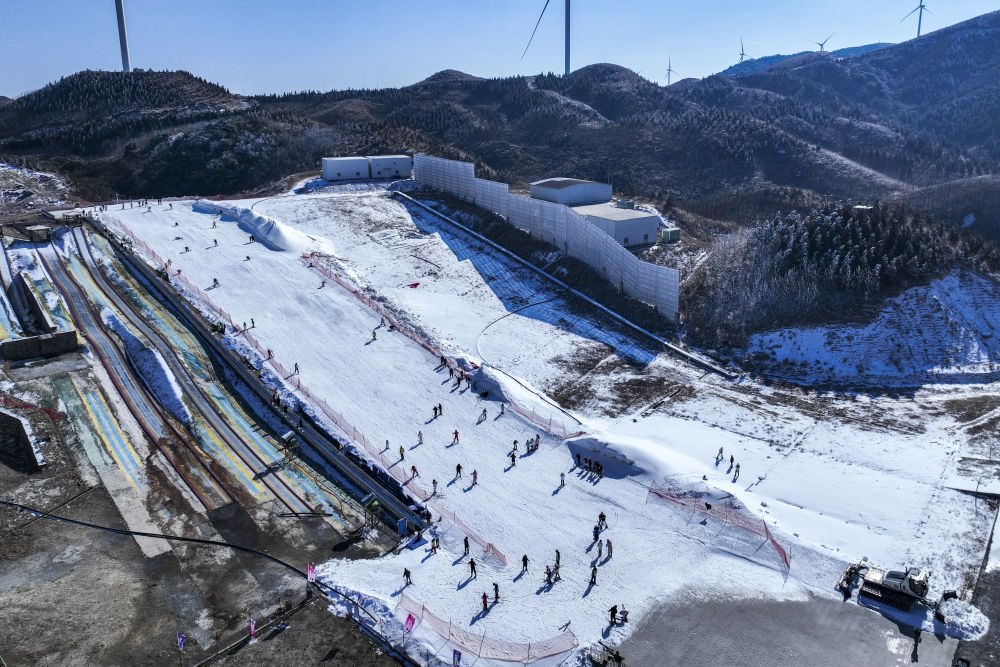2025年1月23日,游客在湖北神農(nóng)架中和國(guó)際滑雪場(chǎng)滑雪。湖北省神農(nóng)架林區(qū)冬季降雪量豐富、雪質(zhì)蓬松,為中部地區(qū)滑雪愛(ài)好者提供了良好的練習(xí)環(huán)境。