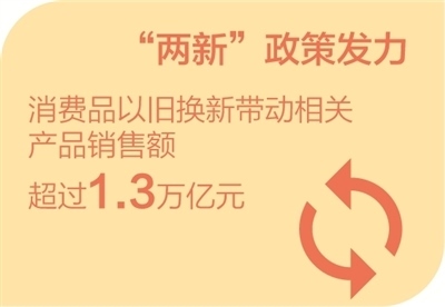 商務(wù)部新聞發(fā)言人何詠前:中央經(jīng)濟(jì)工作會議提出,大力提振消費(fèi)。初步統(tǒng)計,2024年,全國汽車以舊換新超過680萬輛,超3600萬名消費(fèi)者購買8大類家電以舊換新產(chǎn)品超過5600萬臺,家裝廚衛(wèi)“煥新”補(bǔ)貼產(chǎn)品約6000萬件,電動自行車以舊換新超過138萬輛。消費(fèi)品以舊換新帶動相關(guān)產(chǎn)品銷售額超過1.3萬億元。