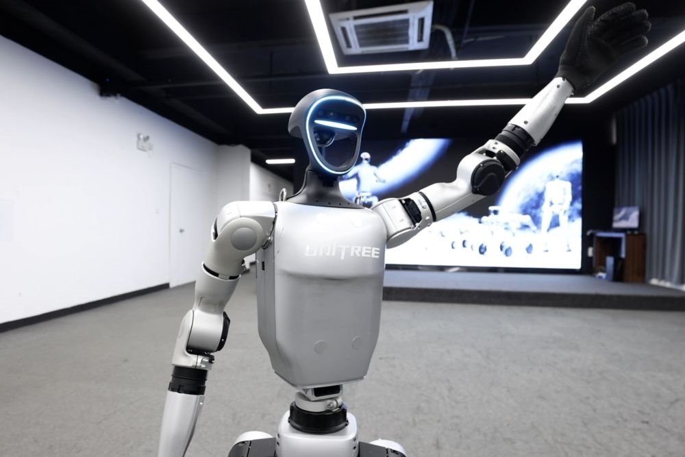 2024年11月7日在杭州宇樹科技有限公司拍攝的的Unitree G1人形智能體。近年來,國內(nèi)民營科技企業(yè)對機(jī)器人、人工智能等領(lǐng)域的研發(fā),大幅提升了生產(chǎn)效率,帶動相關(guān)學(xué)科發(fā)展,培養(yǎng)跨領(lǐng)域創(chuàng)新人才,為加快培育新質(zhì)生產(chǎn)力注入了強(qiáng)勁動力。
