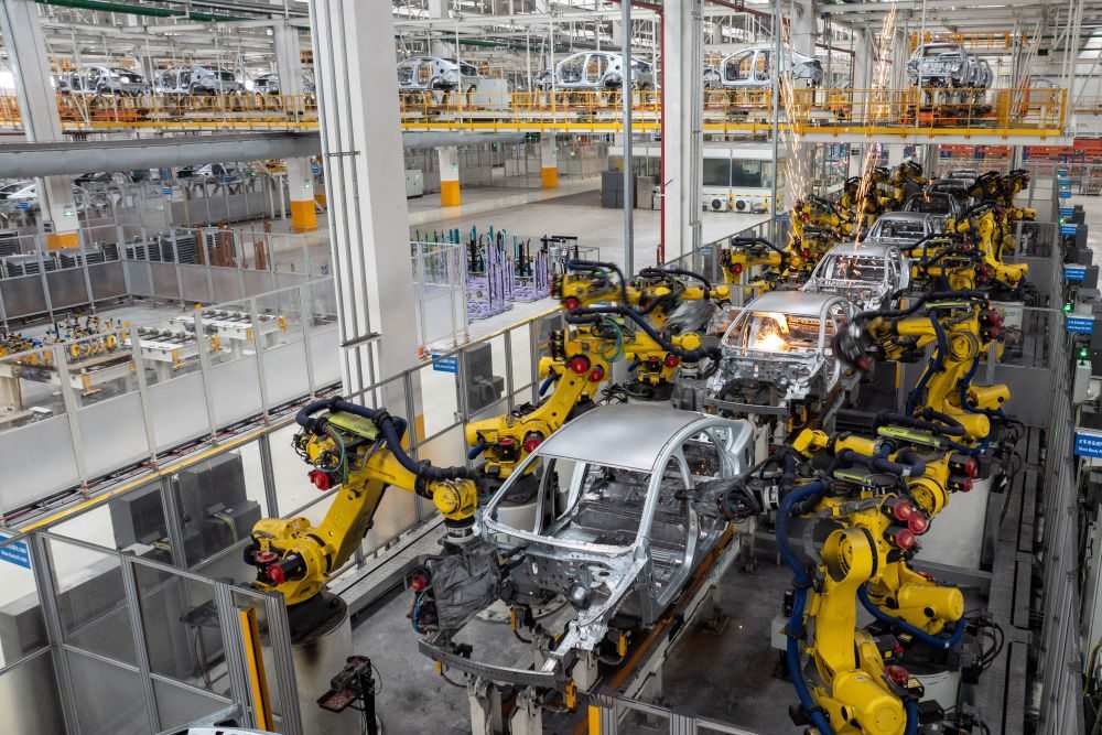 這是2024年3月21日在比亞迪長沙雨花工廠拍攝的自動化生產(chǎn)線。2024年中國新能源汽車產(chǎn)量突破1300萬輛,人工智能、數(shù)字經(jīng)濟(jì)等領(lǐng)域創(chuàng)新成果持續(xù)涌現(xiàn),處處都能看到民營企業(yè)大顯身手。