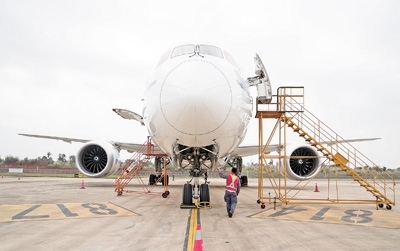 “面前這個(gè)大家伙,是來(lái)自蒙古航空的波音B787—9飛機(jī),1月中旬飛到海南自貿(mào)港一站式飛機(jī)維修產(chǎn)業(yè)基地接受專項(xiàng)維修服務(wù)。我們要加緊做好發(fā)動(dòng)機(jī)換發(fā)、專項(xiàng)維修服務(wù)和飛機(jī)封存等工作。”楊榮川介紹。