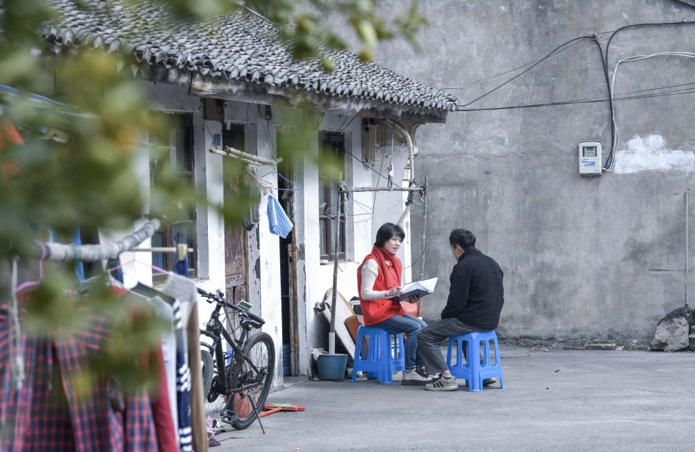 2023年9月13日,浙江湖州愛山街道安定書院的社區(qū)志愿者為獨居老人帶來代買的蔬菜。該志愿團隊由中老年志愿者組成,以銀齡公益互助的形式,為高齡老年人提供公益志愿服務。