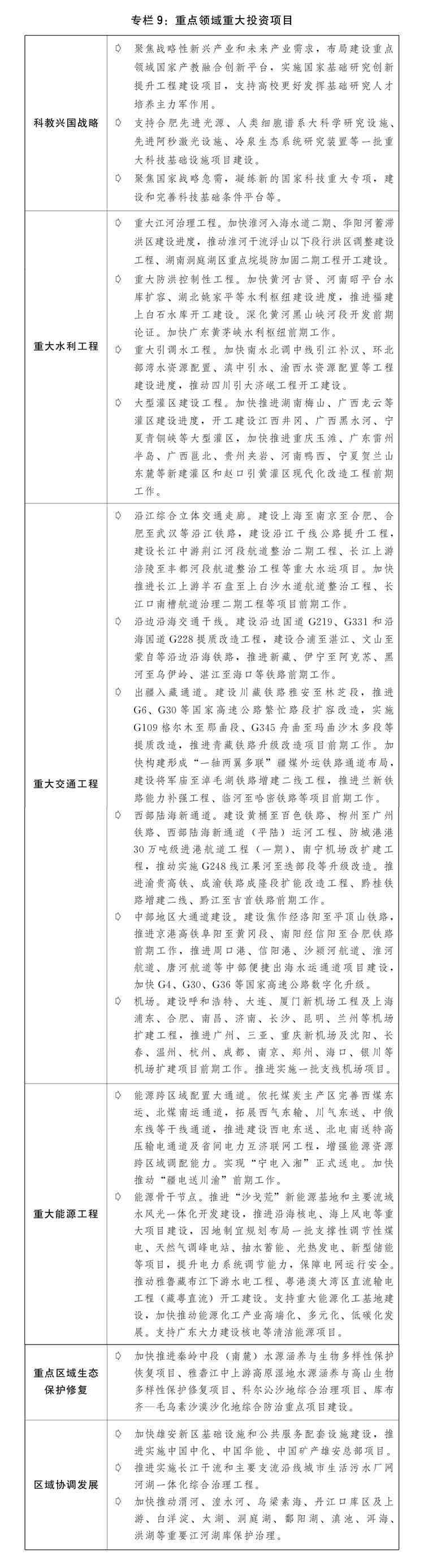 二是擴(kuò)大有效益的投資。統(tǒng)籌傳統(tǒng)和新型基礎(chǔ)設(shè)施建設(shè)、傳統(tǒng)和新興產(chǎn)業(yè)發(fā)展、“投資于物”和“投資于人”,著力提高投資的經(jīng)濟(jì)、社會(huì)、生態(tài)等綜合效益。2025年安排中央預(yù)算內(nèi)投資7350億元,比2024年多350億元。扎實(shí)推進(jìn)重大工程項(xiàng)目建設(shè),推動(dòng)“十四五”規(guī)劃102項(xiàng)重大工程圓滿收官,及早謀劃“十五五”重大項(xiàng)目。常態(tài)化做好項(xiàng)目謀劃儲(chǔ)備,加強(qiáng)用地、用海、用能、環(huán)評(píng)等要素和融資保障,高質(zhì)量推進(jìn)項(xiàng)目前期工作和建設(shè)實(shí)施,盡快形成實(shí)物工作量。加快地方政府專(zhuān)項(xiàng)債券發(fā)行使用,優(yōu)化完善專(zhuān)項(xiàng)債券管理機(jī)制,額度分配向項(xiàng)目準(zhǔn)備充分、投資效率較高、資金使用效益好的地區(qū)傾斜,擴(kuò)大用作項(xiàng)目資本金的領(lǐng)域、比例,實(shí)施好投向領(lǐng)域“負(fù)面清單”管理、下放項(xiàng)目審核權(quán)限等措施,在部分省市開(kāi)展“自審自發(fā)”試點(diǎn)。建立政府投資支持基礎(chǔ)性、公益性、長(zhǎng)遠(yuǎn)性重大項(xiàng)目建設(shè)長(zhǎng)效機(jī)制。深化投資審批制度改革,完善項(xiàng)目全周期監(jiān)督管理機(jī)制。更大力度促進(jìn)民間投資,從放寬準(zhǔn)入、權(quán)益保護(hù)、要素協(xié)同、融資支持等方面進(jìn)一步健全民營(yíng)企業(yè)參與國(guó)家重大項(xiàng)目建設(shè)的長(zhǎng)效機(jī)制,常態(tài)化向民間資本推介項(xiàng)目,在鐵路、核電、水利、生態(tài)環(huán)保、倉(cāng)儲(chǔ)物流、新型基礎(chǔ)設(shè)施、公共服務(wù)等領(lǐng)域推出一批吸引民間資本參與的重大項(xiàng)目,規(guī)范實(shí)施政府和社會(huì)資本合作(PPP)新機(jī)制,推動(dòng)基礎(chǔ)設(shè)施領(lǐng)域不動(dòng)產(chǎn)投資信托基金(REITs)擴(kuò)圍擴(kuò)容。
