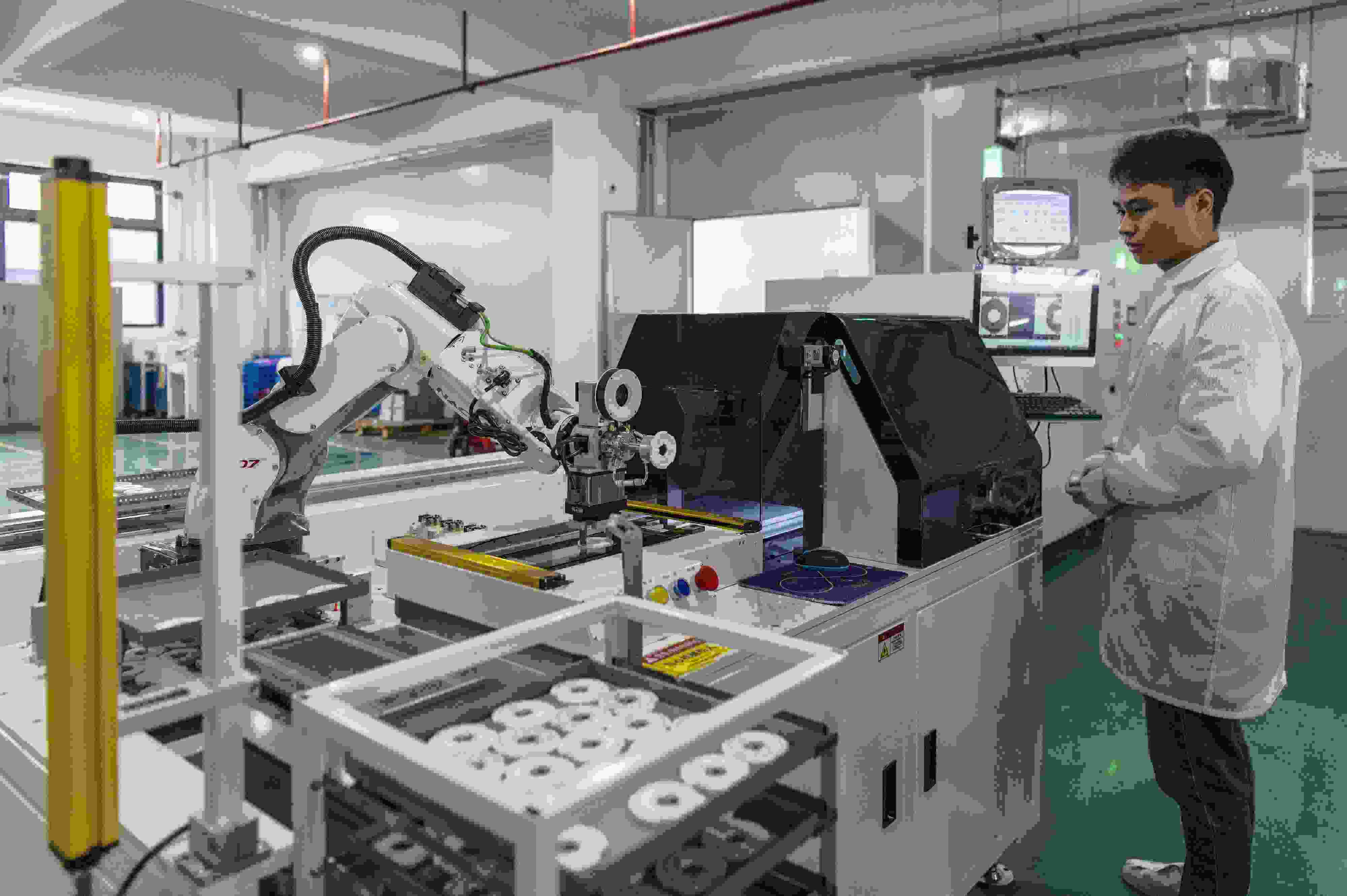 △2025年3月11日,在浙江省金華市浦江三思光電技術(shù)有限公司自動(dòng)化生產(chǎn)線(xiàn)上,一只只機(jī)械臂靈活運(yùn)轉(zhuǎn)著,趕訂單、忙生產(chǎn)。