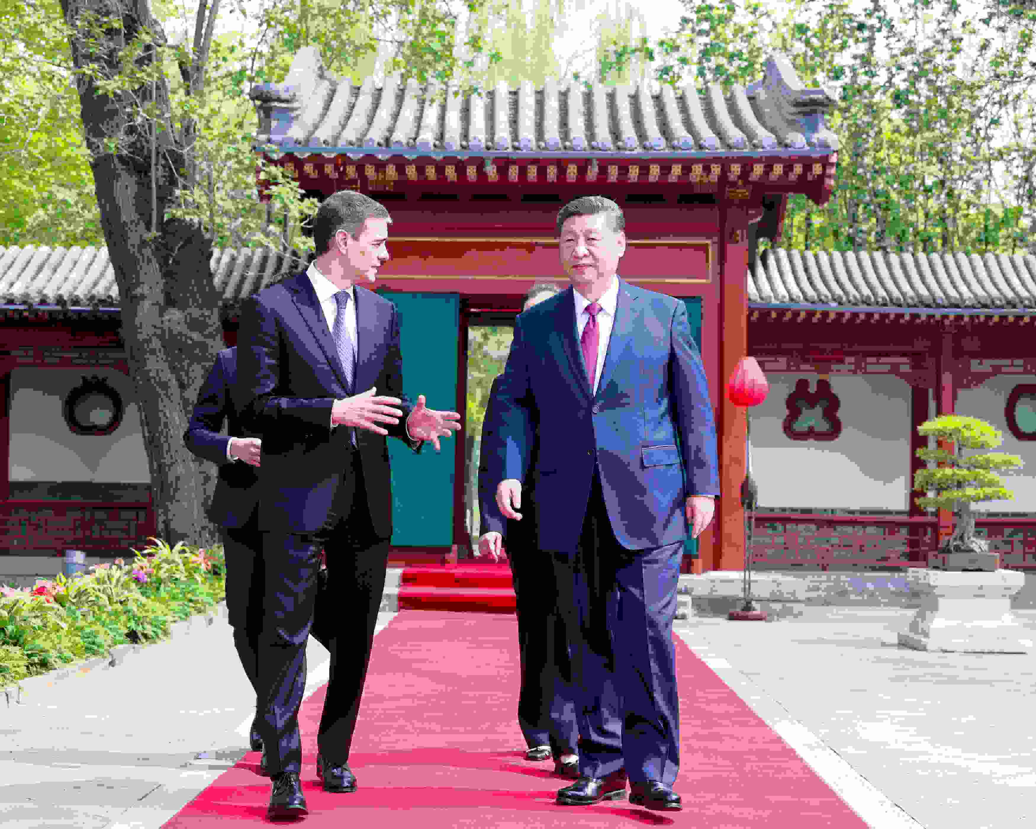 在北京釣魚臺國賓館內(nèi),兩國領(lǐng)導(dǎo)人邊走邊聊,這種輕松的氛圍不僅拉近了兩國距離,更彰顯了中國和西班牙相互信賴、相互尊重、互利共贏的戰(zhàn)略定力和遠見卓識。