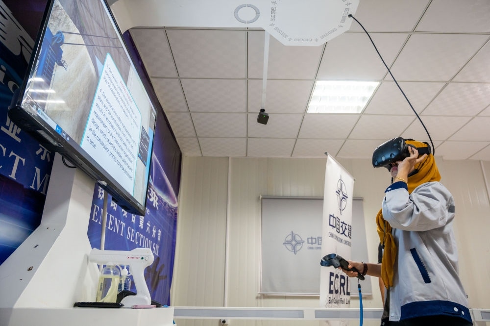 2021年11月9日,在位于彭亨州馬蘭的馬來西亞東海岸鐵路項目安全教育培訓(xùn)中心,一名工作人員借助VR技術(shù)學(xué)習(xí)安全知識。為確保項目安全推進(jìn),中國交通建設(shè)集團(tuán)有限公司在承建的馬東鐵項目沿線設(shè)立了多個虛擬現(xiàn)實和實體體驗安全教育培訓(xùn)中心,借助沉浸式3D技術(shù)與VR設(shè)備,模擬了近百種潛在的施工現(xiàn)場危險情況,有效提升了項目員工的安全意識和技能水平。