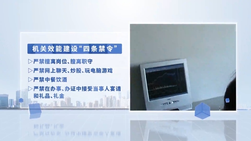 作為機關效能建設的重要抓手,這一年,浙江出臺機關效能建設“四條禁令”,嚴查上班遲到、辦公室炒股玩游戲、中餐飲酒、辦事吃拿卡要等群眾反映最強烈最突出的問題。