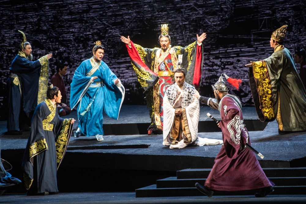 2023年4月8日,首屆楚文化節(jié)在湖北荊州開(kāi)幕。文化節(jié)設(shè)計(jì)了楚史展覽、楚藝大觀、楚戲匯演、楚肆趕集、楚地尋游5大版塊,及楚王車馬陣出土文物展、荊楚非遺秀等一系列子活動(dòng),展現(xiàn)楚文化的深厚內(nèi)涵和時(shí)代魅力。這是演員在開(kāi)幕式上表演節(jié)目。
