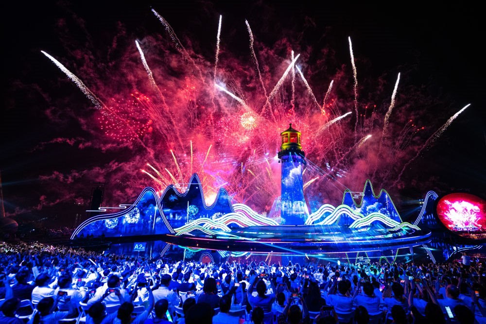2023年9月16日,第十四屆中國(guó)長(zhǎng)江三峽國(guó)際旅游節(jié)在湖北宜昌市燈塔廣場(chǎng)開(kāi)幕,這是觀眾在開(kāi)幕式現(xiàn)場(chǎng)觀看表演。生態(tài)搭臺(tái)、文旅唱戲,長(zhǎng)江三峽國(guó)際旅游節(jié)是近些年三峽庫(kù)區(qū)把綠水青山轉(zhuǎn)變成“金山銀山”的生動(dòng)寫照。