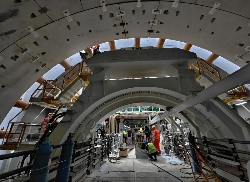 這是廈金大橋(廈門(mén)段)環(huán)島路隧道盾構(gòu)掘進(jìn)施工現(xiàn)場(chǎng)(6月13日攝)。