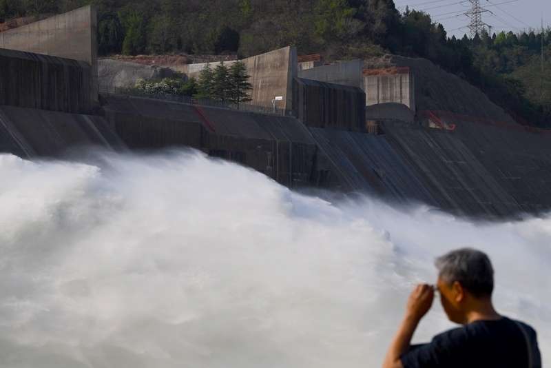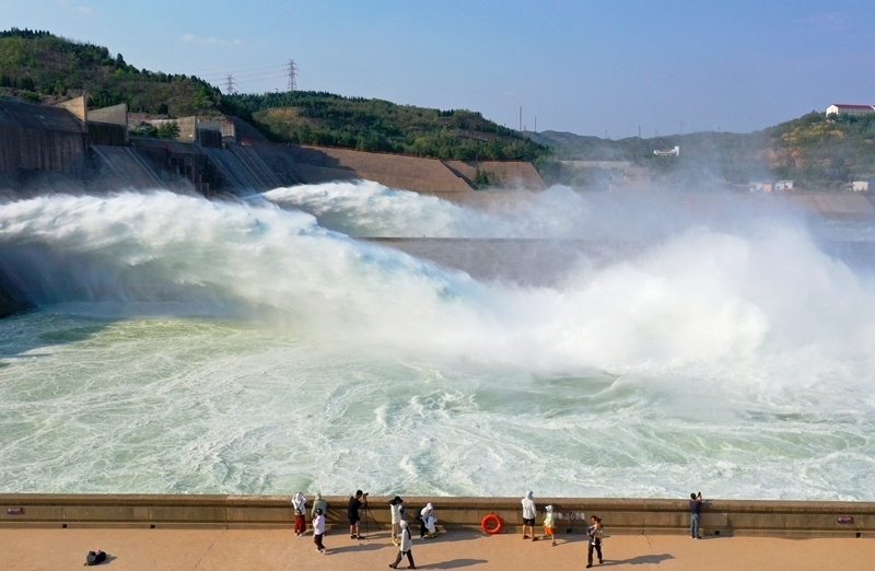 6月23日,游客在小浪底水利樞紐工程出水口觀看調水調沙。
