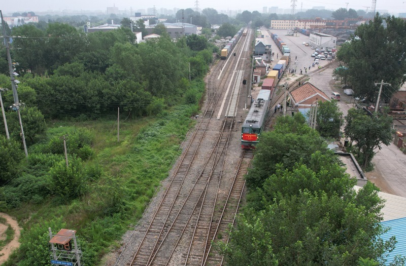 6月30日,北京至阿塞拜疆巴庫的跨里海中歐班列停靠在位于北京市房山區(qū)的北京國際陸港等待發(fā)車。