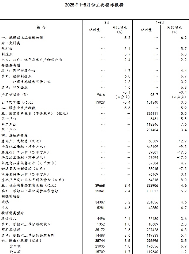 8月份國民經(jīng)濟運行總體平穩(wěn)、穩(wěn)中有進