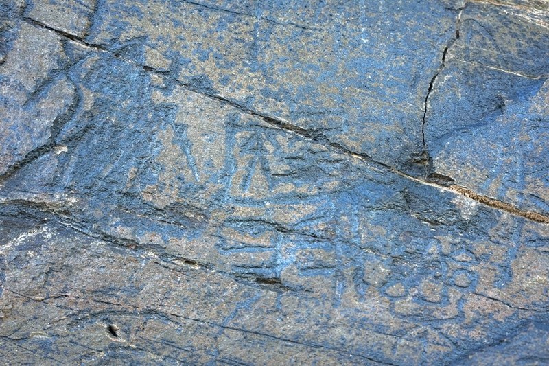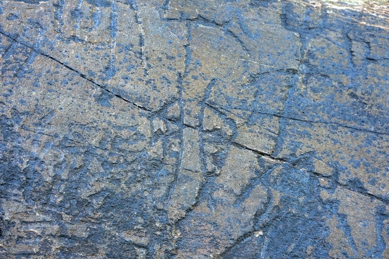 文物考古工作者于2023年7月在青海省瑪多縣扎陵湖畔對(duì)尕日塘秦刻石進(jìn)行現(xiàn)場考察時(shí)拍攝的該刻石遺跡照片。