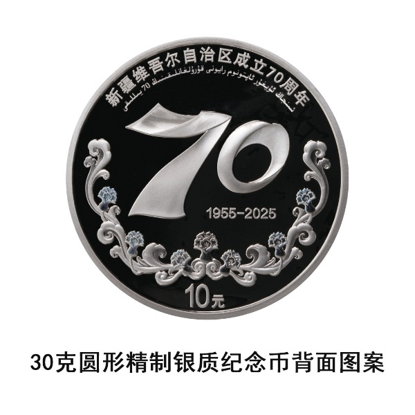 中國人民銀行定于2025年9月19日發(fā)行新疆維吾爾自治區(qū)成立70周年金銀紀念幣一套。該套金銀紀念幣共2枚,其中金質(zhì)紀念幣1枚,銀質(zhì)紀念幣1枚,均為中華人民共和國法定貨幣。