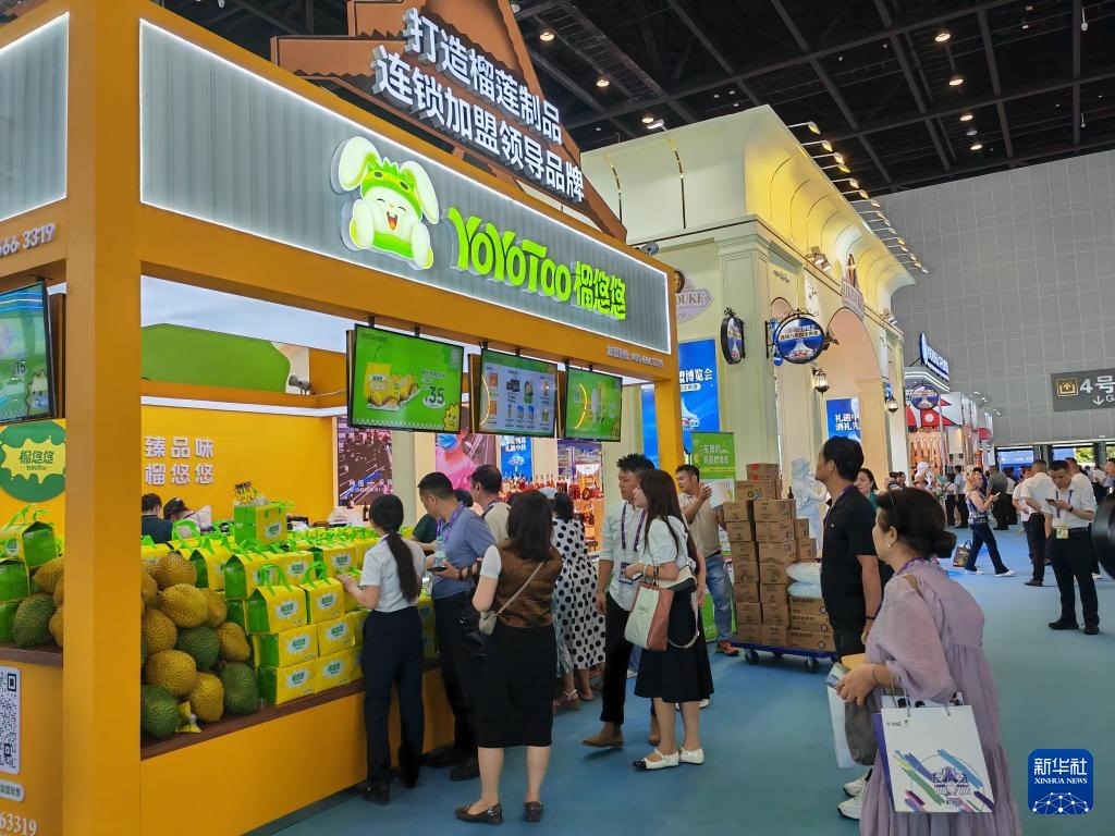 特色榴蓮制品吸引消費(fèi)者體驗(yàn)和購買(9月19日攝)。新華社記者 朱麗莉 攝