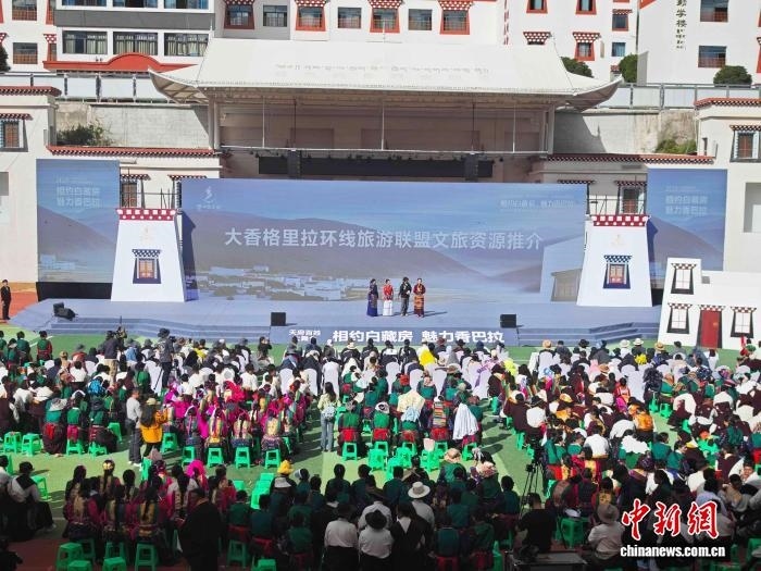 9月20日,四川甘孜鄉(xiāng)城,“2025大香格里拉環(huán)線·鄉(xiāng)城白色灌禮文化周”開幕式上,大香格里拉環(huán)線旅游聯(lián)盟文旅資源推介。記者 張浪 攝