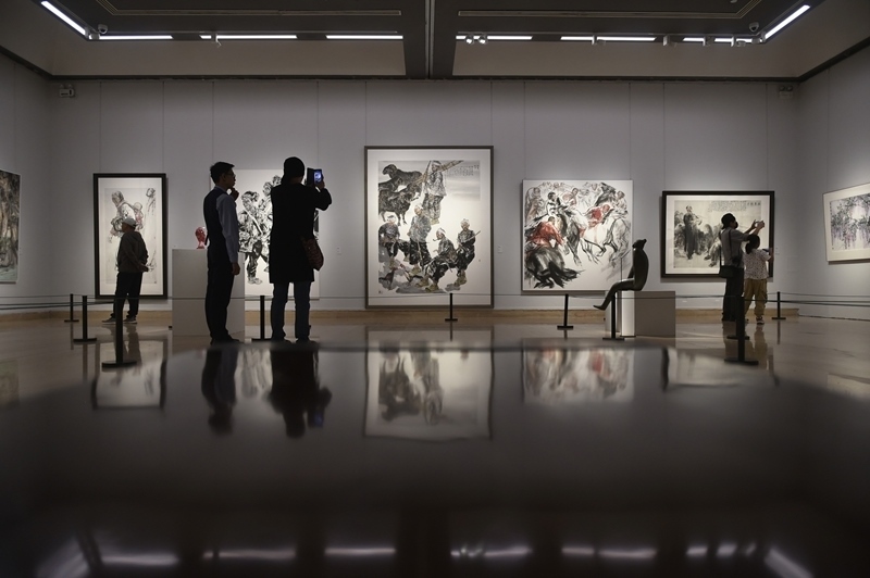 9月27日,觀眾在中國(guó)美術(shù)館參觀展出作品。